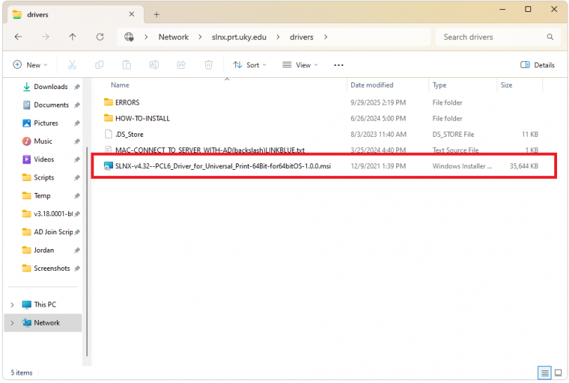 Follow our tutorial to map a network drive and use this path when prompted: \\slnx.prt.uky.edu\drivers